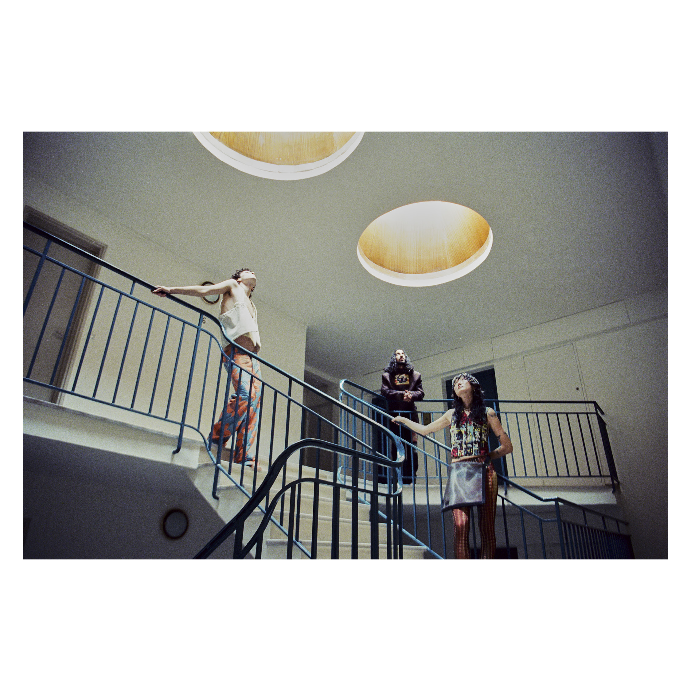 Le choix de l’argentique engage une attention à la matérialité de l’image et à la précision du processus. En studio, sous lumière mixte, la colorimétrie évolue par séquence : certaines images dérivent vers des tonalités froides, d’autres vers des gammes plus chaudes. Cette variabilité, assumée, participe à la lecture des textiles et à la compréhension de leurs réponses à la lumière et au mouvement.